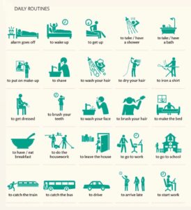Бүгін ағылшын тілінде “Daily routines” Part1 тақырыбымен танысыңыз! alarm goes off- оятқышты өшіру to wake up- ұйқыдан ояну to get up- тұру to take a shower- душ қабылдау to take a bath- ваннаға түсу...