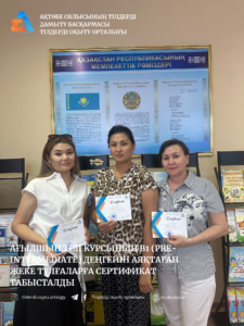 Ағылшын тілі курсының B1 (Pre-Intermediate) деңгейін аяқтаған жеке тұлғаларға сертификаттар табысталды.