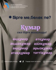«Бірге ме,бөлек пе?» айдарынан📌 Бұл сөз жеке де қолданылады,бір нәрсеге «ынтық»,«ғашық»,«жақсы көреді» деген мағынаны білдіреді.Бірақ бұл сөздің тіркес құрамында қайталанатын,жаңа ұғым жасайиын кездері жиі.Сондықтан «құмар» сөзі сыңарлы құрама сөздерде бірге жазылады.