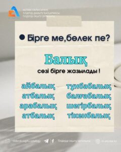 Балық сөзі – суда жүретін жануарлардың жалпы атауы. Ал жалпы атаулар көбіне көмекші мағынаға көшіп отырады. Әртүрлі ұқсатулар мен теңеулерді бейнелейтін сөздермен бірігіп, балық сөзі бірге жазылады.