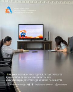 Бүгін Ақтөбе облысы Әділет департаменті қызметкерлеріне арналған мемлекеттік тіл курсының В2 деңгейінде кезекті сабағы өтті.