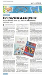 🖇️Тілдерді оқыту орталығының директоры К.Х.Сергазина «Казахстанская правда» газетіне берген сұхбатында: ”Тілдерді оқыту орталығында заманауи технологиялар мен жасанды интеллект оқытуды жаңа деңгейге көтерді, цифрлық құралдар оқытушыларға сабақ дайындауға, тапсырмалар құруға, аудио-видео материал әзірлеуге көмектеседі, ал тыңдаушылар виртуалды сұхбаттасушымен сөйлесіп, бірден кері байланыс алады.” – деп жасанды интеллекттің тіл үйретудегі маңыздылығын атап өтті.