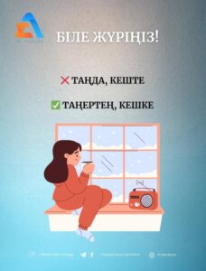 ❌ таңда, кеште ✅ таңертең, кешке Материал “Калькасыз қазақ тілі” каналынан алынды. #білежүріңіз #сауаттыболайық